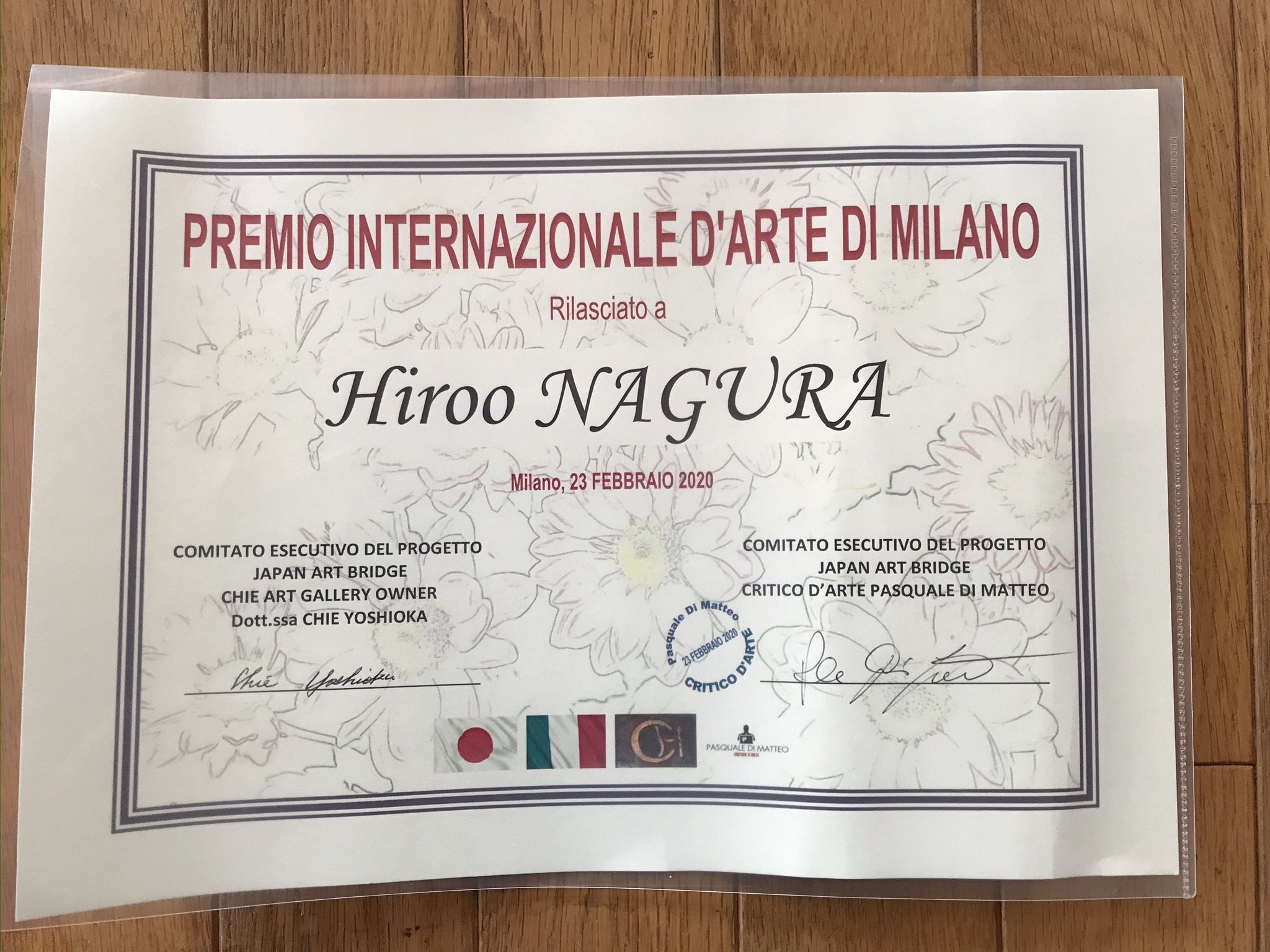 『ミラノ国際芸術褒章受章並びに評論家推薦作家大賞を受賞する