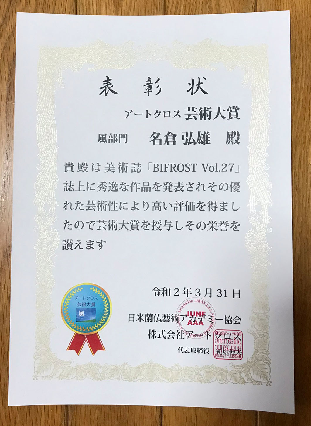アート・ルネサンス・グランプリを受賞する