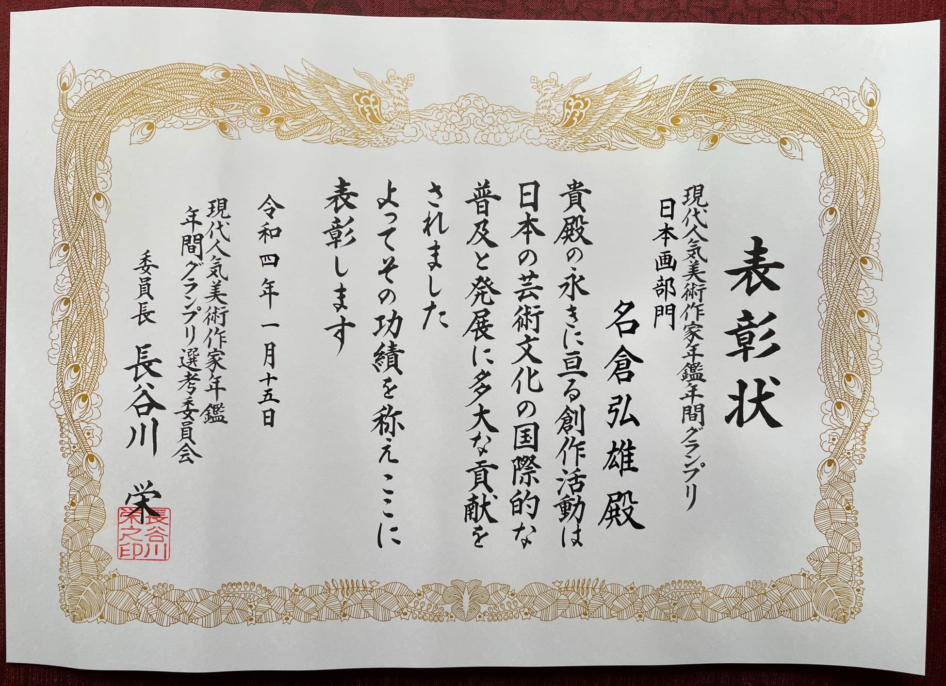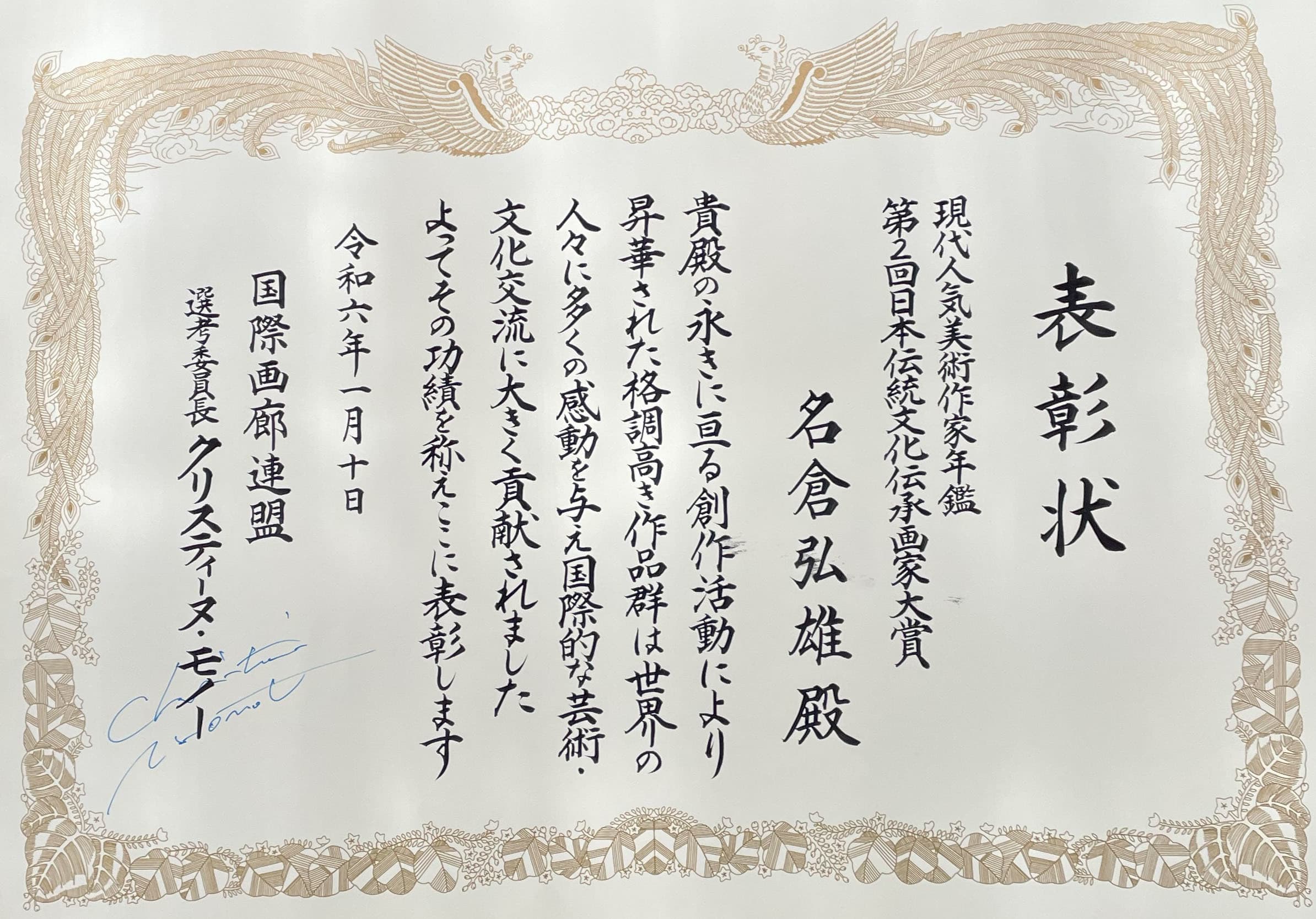 2024 第 2 回日本伝統文化伝承画家大賞を受賞する
