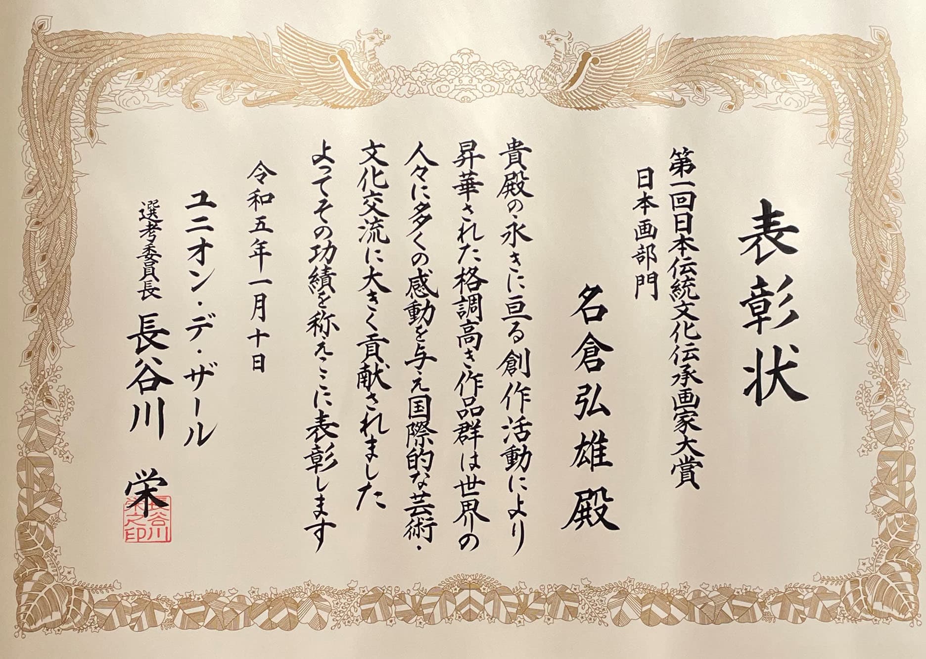 2023 第1回日本伝統文化伝承画家大賞を受賞する