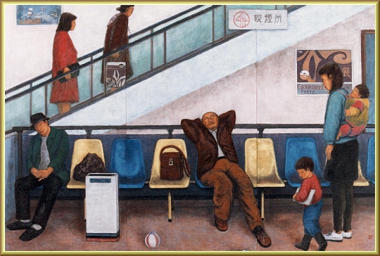 『憩』 変形300 都会の風景シリーズの2作目 デパートの待合室の人間模様を主題にした作品 奨励賞を受賞