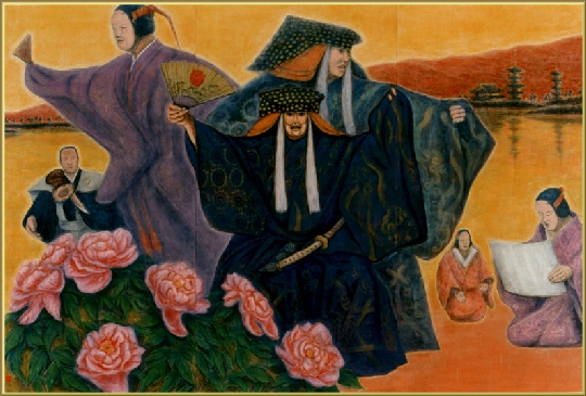 『慕』 F80 能舞台の一場面をデザインした新しい日本画の表現を試みた作品3