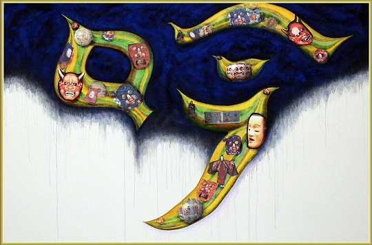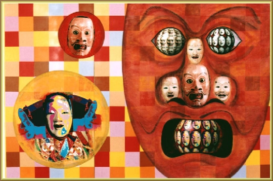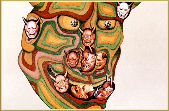 『能面のコンポジション』 変形300 写真と絵の組み合わせによる奇抜な構成 所有する般若面が被写体 迫力のある画面構成が主眼