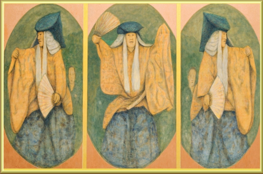 『情』 変形300 舞の姿をシンメトリック的にデザインしたもので新しい日本画の表現を試みた作品1