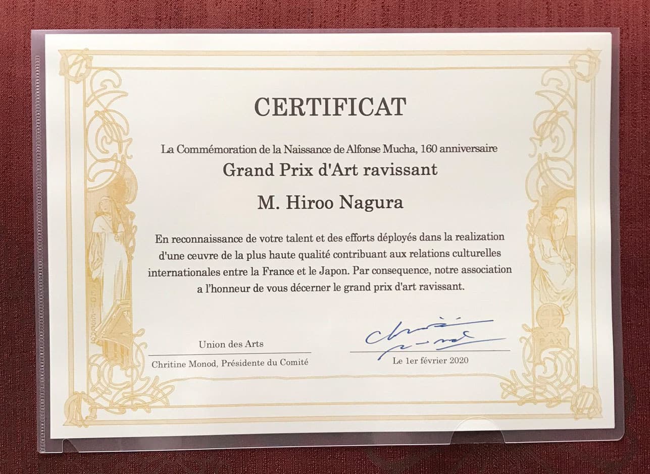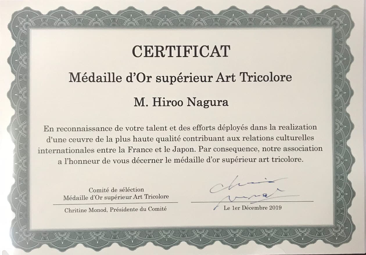 貴殿はその類稀なる才能と努力により、フランスと日本の国際文化関係構築を実現する為、