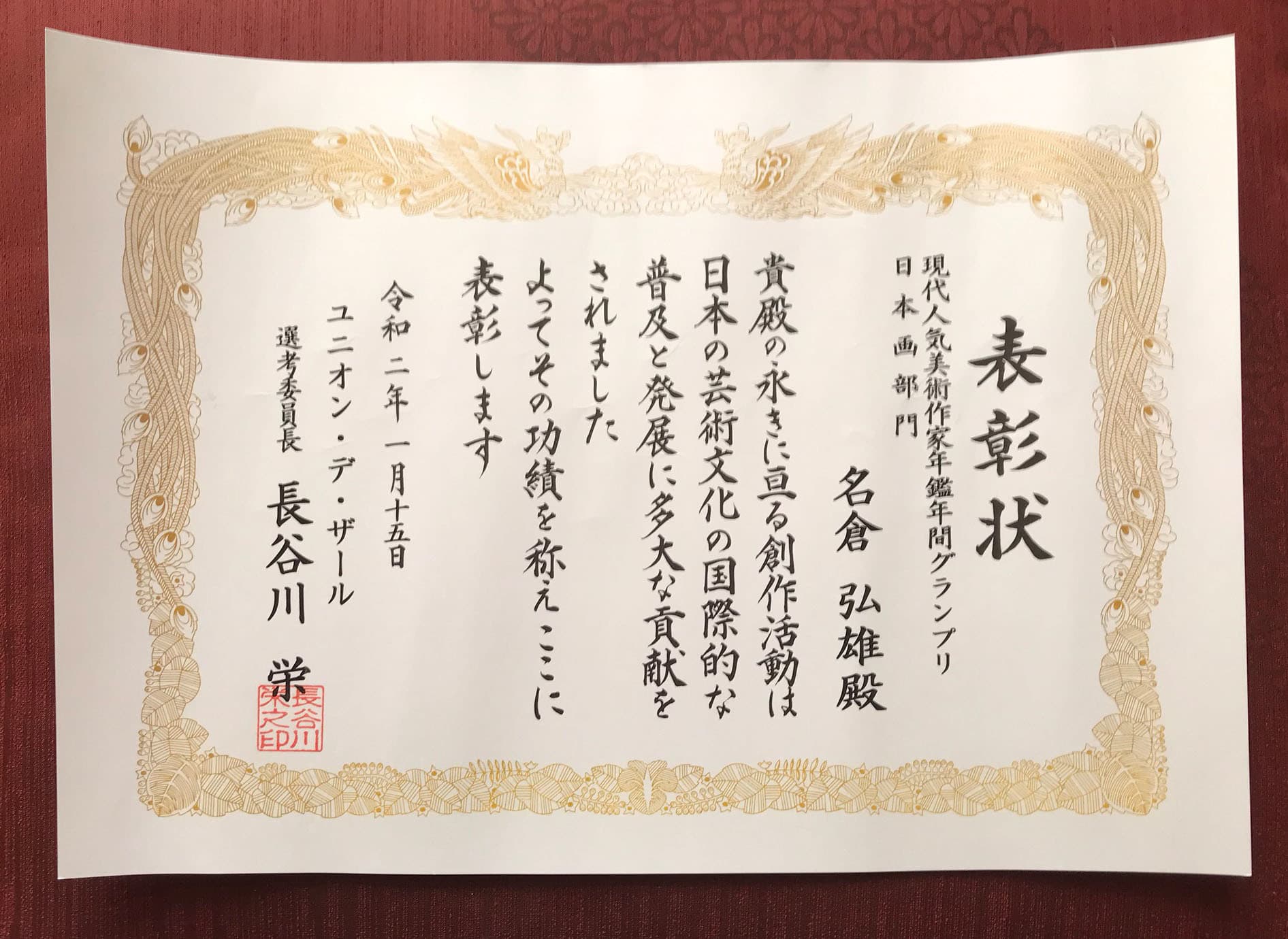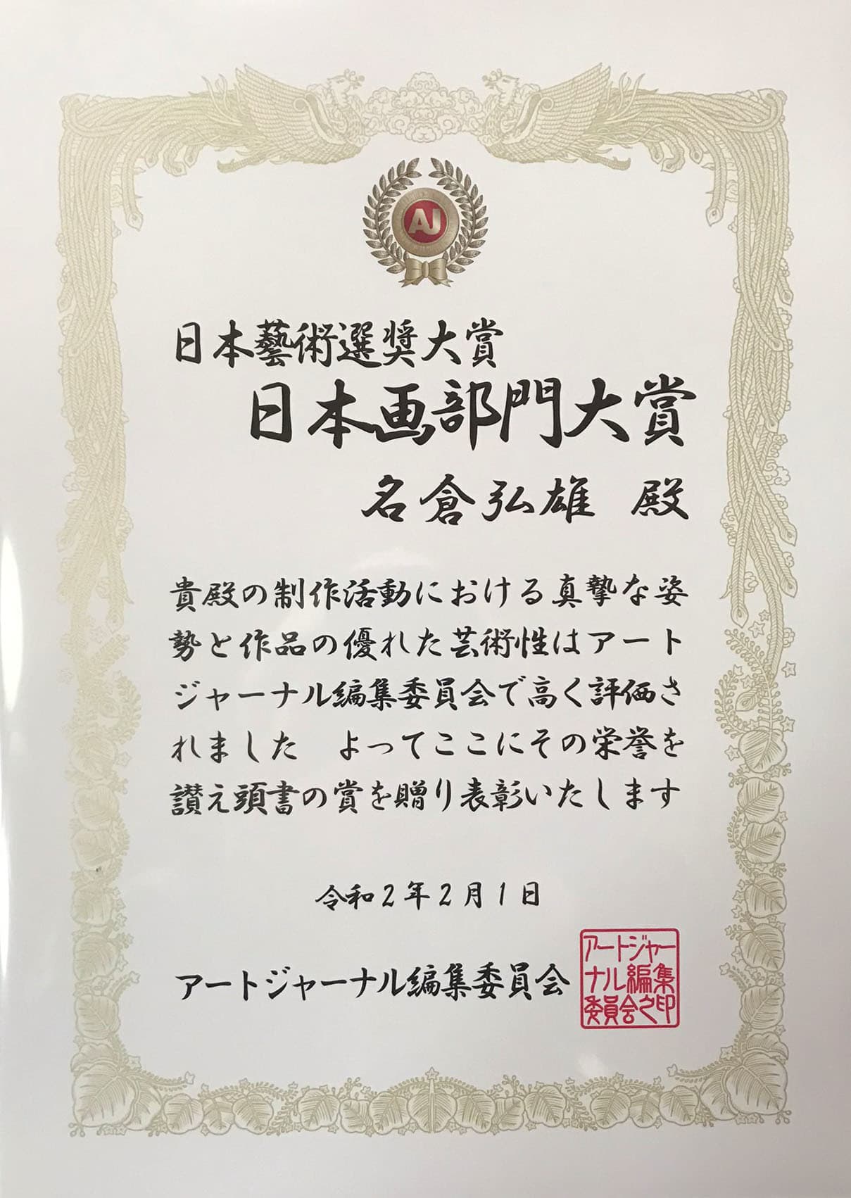 年間グランプリ日本画部門を授与される