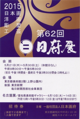 HPの更新がままならない日々が続いている。このような状態は、作家生活に没頭している時である。6月10日(水)から14日(日)の名古屋展 (日府展) でお会いできることを楽しみにしている。