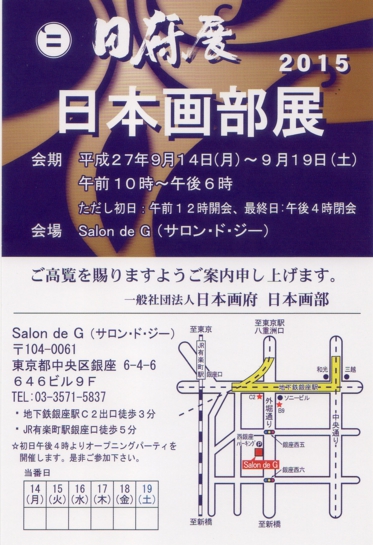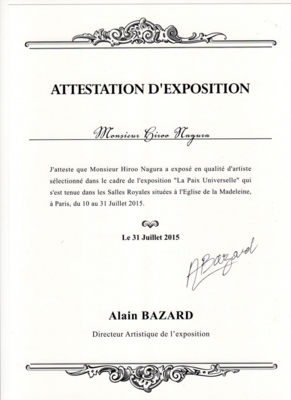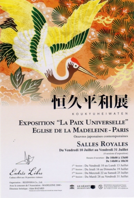 パリ・マドレーヌ寺院で開催の 2015 「 恒久平和展 」 に出品する。上のポスターにあるように会期が 7月10日(金)〜7月31日(木) とあり、会期は4回に分かれる。