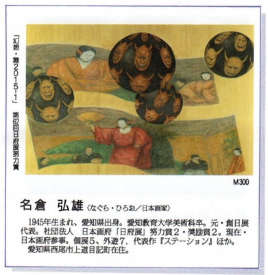 新美術新聞の2015公募展評が昨年に続いて載った。寸評 「 名倉弘雄は能の世界を自由自在かつ大胆に描く 」・・・・掲載された作品は下図のもの