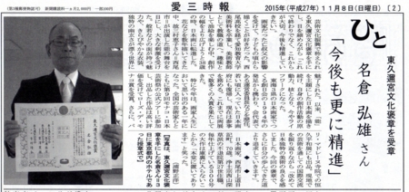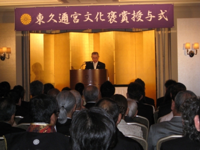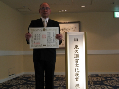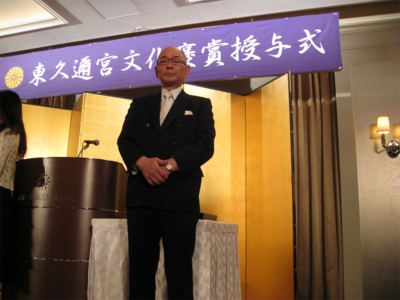 私に 東久邇宮文化褒賞受賞 決定の通知が届いた。11月3日 文化の日 授与式が東京の京王プラザホテルにて行われる。誠にもって光栄なことである。