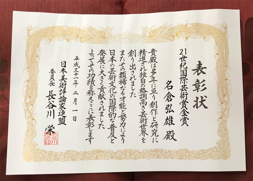 国際美術評論家の長谷川栄先生よりアート・ルネサンス・グランプリ賞を授与される。